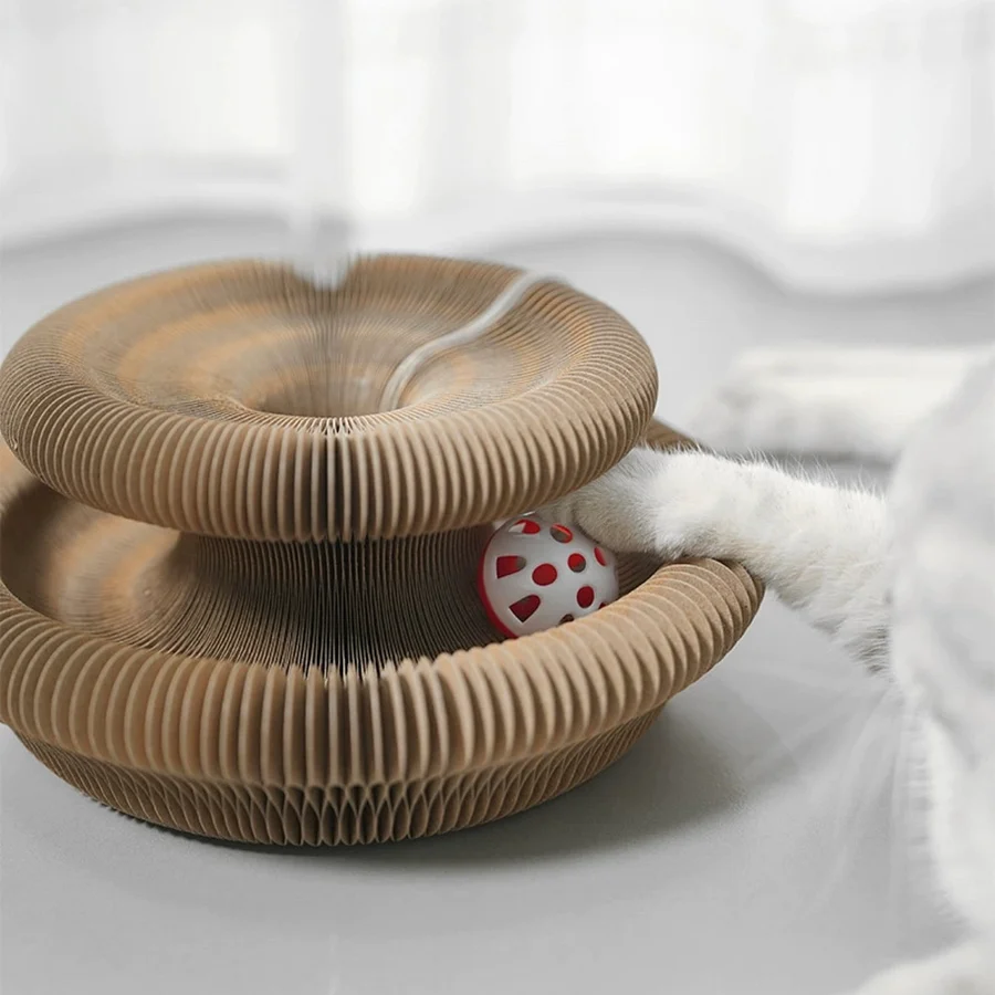 This cardboard cat scratching post is the perfect place for cats to rest and play. It's not only multifunctional, providing a scratching surface, but it can also serve as a comfortable resting bed.
